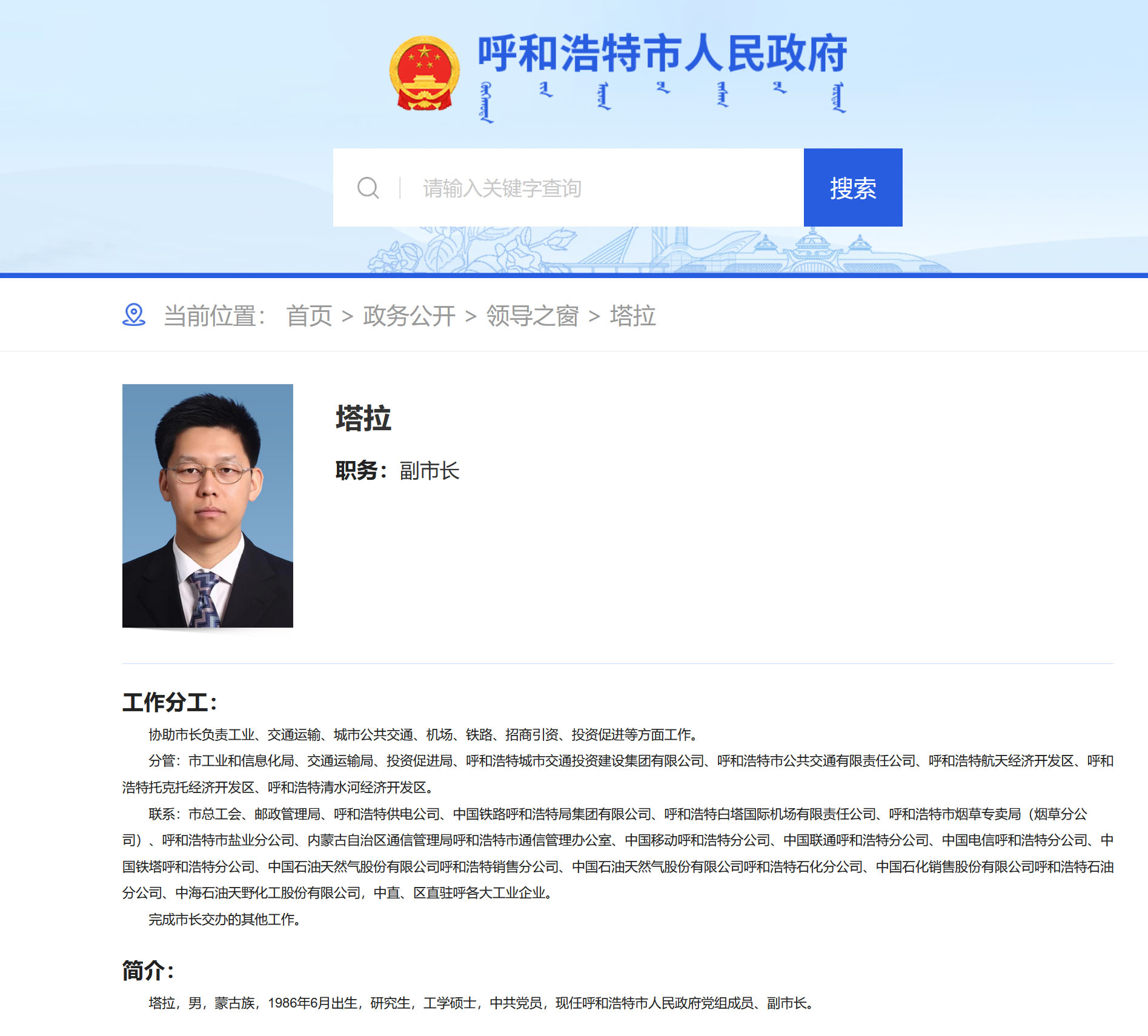 “85後”塔拉,任呼和浩特市副市長
