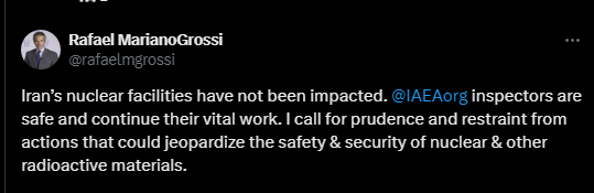 國際原子能機構總幹事:伊朗核設施未在以色列襲擊中受到影響