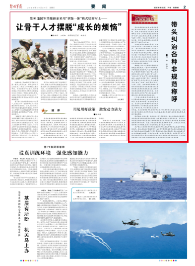 本文刊於《解放軍報》10月27日第02版,原題為《帶頭糾治各種非規範稱呼》,作者胡帥、魏高傑