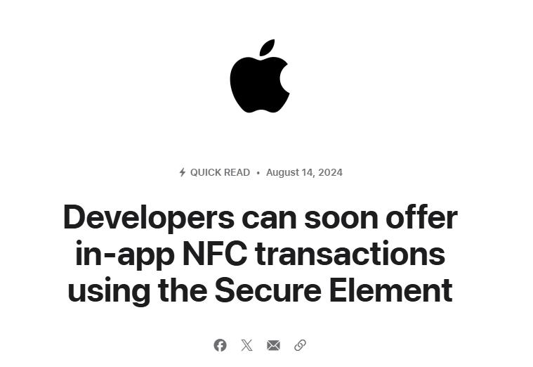 蘋果在官網上發佈的開發者很快就能在應用中調用NFC的通告