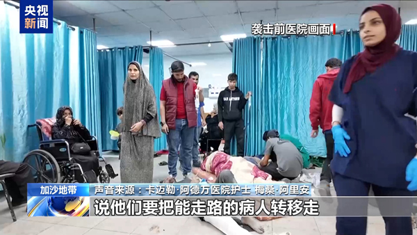 **卡邁勒·阿德萬醫院護士 梅桑·阿里安:**當時,我們看到以軍士兵站在醫院大門口,他們是在我們不知不覺間出現在那裏的,以軍去了手術部門,並且不准我們進去,他們把我們困在前台。我們把病人也轉移到了前台,然後他們去找(院長)胡薩姆醫生,説他們要把能走路的病人轉移走。一些病人身上還插着尿管和輸液管,有些人受了內傷,走不了很長的距離,但以軍堅持讓他們步行走出去。
