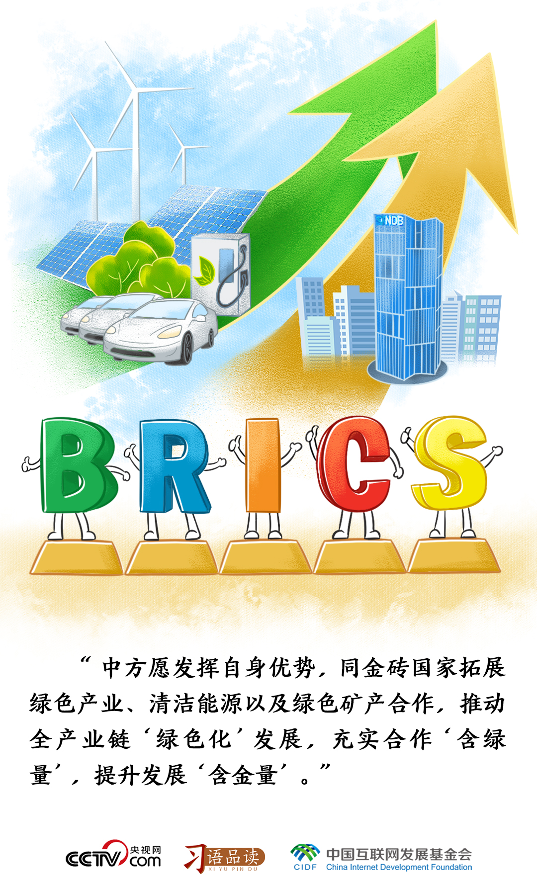 習主席強調,中方願同金磚國家拓展綠色產業、清潔能源以及綠色礦產合作,推動全產業鏈“綠色化”發展,充實合作“含綠量”,提升發展“含金量”。