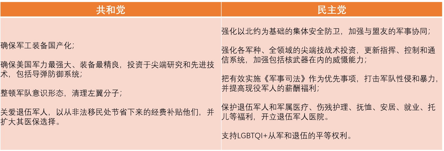 兩黨在軍事問題上的攻辯,也多停留在互相質疑對方的能力和資格上。對於美國軍隊如今到底面臨怎樣的問題、如何推動美軍改革、凝聚軍心士氣,卻是着墨甚少,表現出了相當的默契。