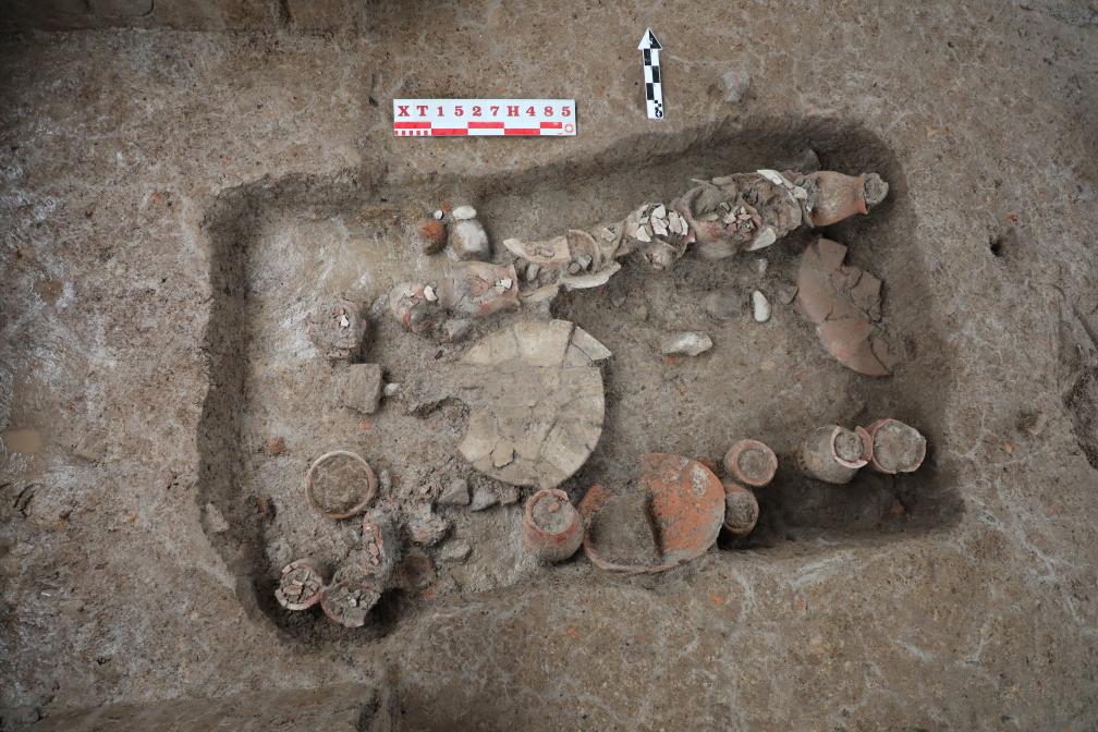 下湯遺址的重要發現不止於此。仲召兵説,他們還發現了4處建築遺蹟、1處農業加工遺蹟,還有多座墓葬。其中有一座高等級墓葬,在裏面發現20餘件隨葬陶器,這是目前上山文化考古發現的規格最大、等級最高的墓葬。“下湯遺址是目前已經發掘的上山文化遺址中聚落要素最完備、結構最清晰、內涵最豐富的遺址。”他説。