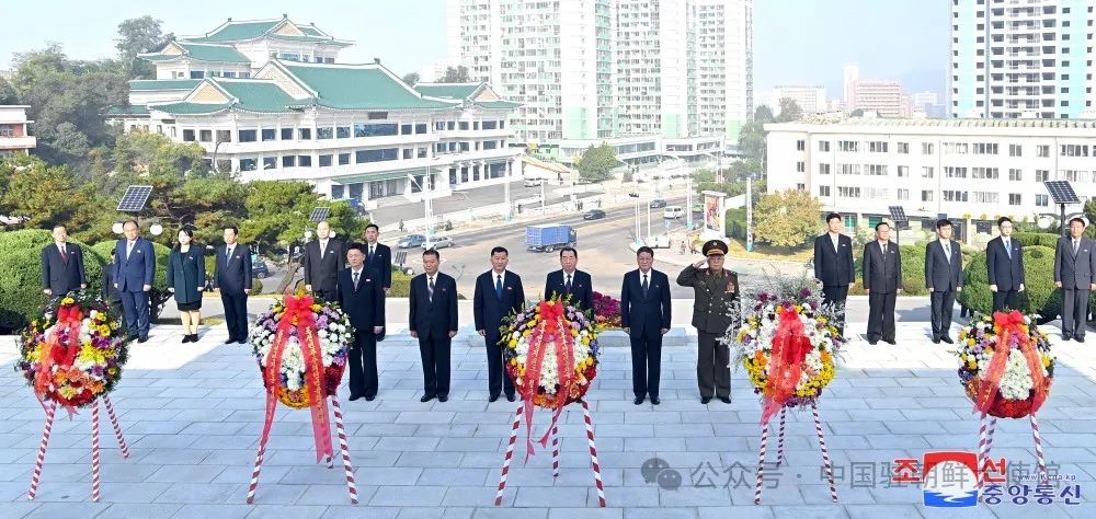 “中國駐朝鮮大使館”公眾號10月28日消息,據《勞動新聞》、朝中社報道,2024年10月25日,在中國人民志願軍入朝參戰74週年當天,朝鮮最高人民會議常任委員會副委員長姜潤石率朝鮮勞動黨中央委員會副部長文成革、外務省副相樸明浩及有關部門幹部等向友誼塔敬獻花圈。
