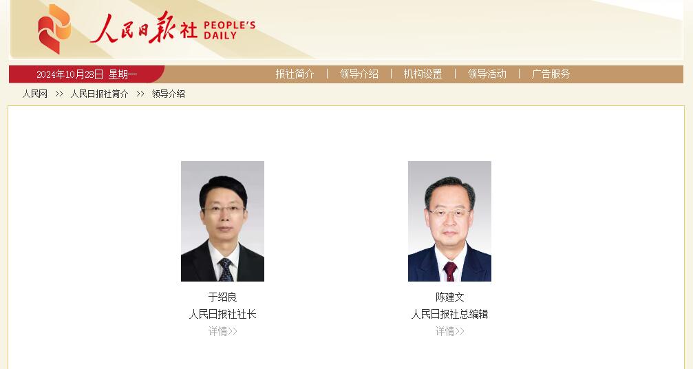 人民日報社網站更新顯示,陳建文已任人民日報社總編輯。而此前擔任總編輯的於紹良,現已任社長。