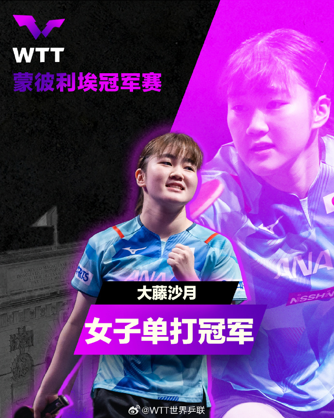 同日進行的女單決賽在兩名日本選手之間展開,日本選手大藤沙月4-2戰勝張本美和,六局比分分別為11-4,9-11,9-11,13-11,11-7,11-4。大藤沙月成為首位贏得WTT冠軍賽女單冠軍的非中國選手。