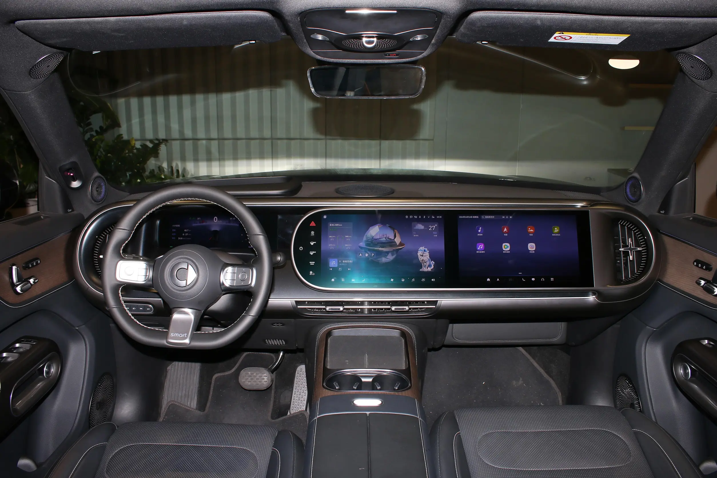 smart精靈5號在內飾設計上提供5種個性化風格選擇。在細節部分,新車擁有類似類似於奔馳的設計元素以增添豪華感,例如意大利阿爾卑斯山脈橡木飾板、256色氛圍燈、森海塞爾音響系統、懸浮飛碟式升降揚聲器等。