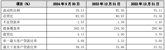 2024年9月30日,不良貸款率1.57%,較年初下降0.02個百分點,撥備覆蓋率262.53%,較年初上升18.03個百分點,撥貸比4.13%,較年初上升0.23個百分點。資本水平保持充足,資本充足率14.68%,一級資本充足率13.48%,核心一級資本充足率12.43%。