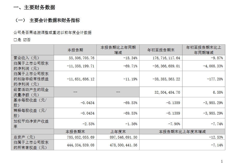 此外,中青寶近日公佈的第三季度報告顯示,該公司第三季度收入為0.56億元,同比下降18.34%;歸母淨利潤為-1165萬元,虧損幅度進一步擴大;前三季度營收總和為1.77億元,同比下降9.87%;歸母淨利潤為-3637萬元。