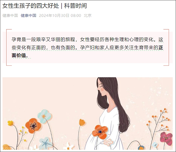 10月30日,國家衞健委旗下微信公眾號“健康中國”發文科普女性生孩子的四大好處。