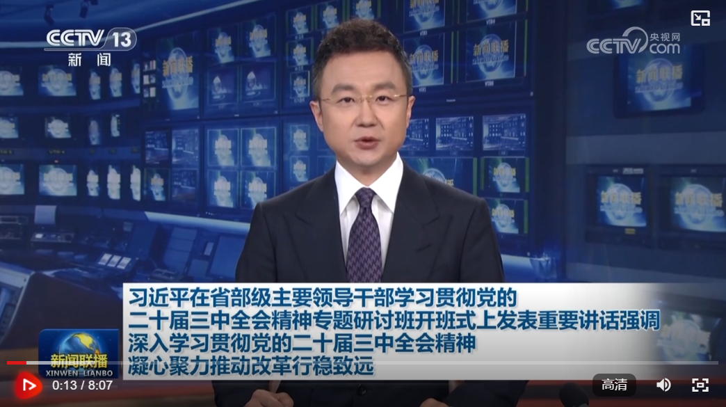 習近平總書記充分肯定了新時代全面深化改革取得的一系列重大成果,深刻闡述了進一步全面深化改革的指導思想、總體目標、重大原則、科學方法。總書記的重要講話,明確方向原則、講明重點要點、傳授科學方法,立意高遠、思想深邃、論述精闢、內涵豐富,為全黨特別是黨的高級領導幹部上了一堂深刻、生動的改革課、理論課,必將指引我們全面準確理解黨的二十屆三中全會精神,堅定改革信心、把準改革方向、強化改革責任、匯聚改革合力,營造良好氛圍,紮實推進各項改革舉措精準落地見效。