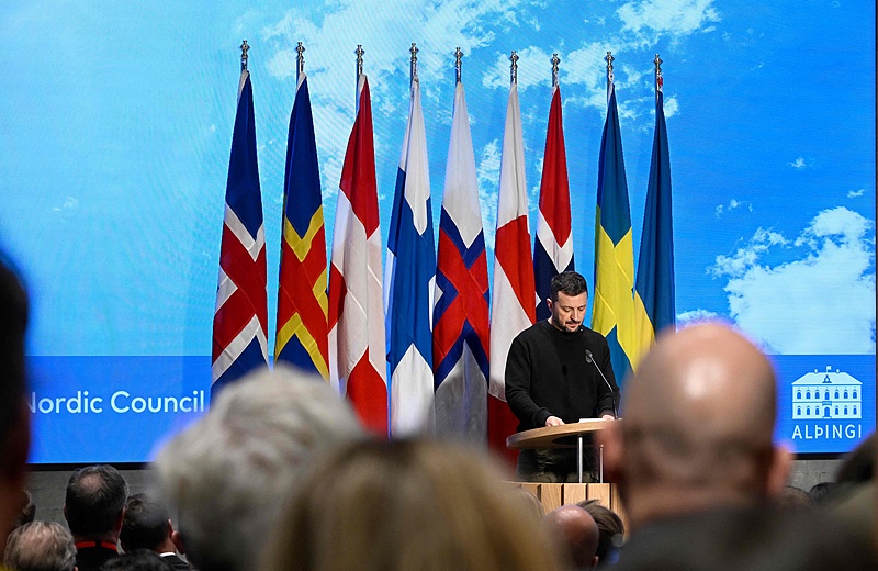 當地時間10月29日,冰島雷克亞未克,2024年北歐理事會會議期間,烏克蘭總統澤連斯基發表講話。 視覺中國