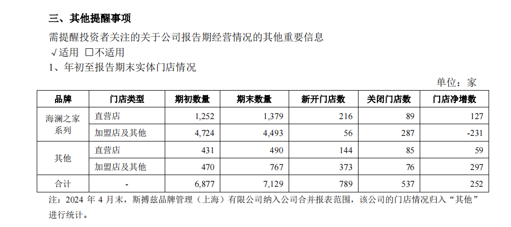 在產品端,海瀾之家品牌提出“適人體、優人態、合人需、達人意”這四大核心設計原則作為精準指引,持續提升包容覆蓋度、迭代設計專業度、緊隨當代需求變化、提升洞察共情力,創造有生命力的服飾,服務每個人的光采。報告期,以新質生產力形成新產品、新技術,推出“新質衞衣”“磁吸夾克”系列,讓消費者煥發新活力;隨着用户的更迭與科技的發展進步,研發“羊毛新五感”系列,為消費者提供更細緻更全面更具綜合性的體驗方式,能夠給當代年輕人提供情緒、歸屬、滿足、治癒、社交等需求;聯名“麻煩星球”“布魯伊”“龍珠”等系列,經典元素自由鬆弛、輕鬆寫意的日漫style加碼年輕、活力、樂觀、自由的少年感。