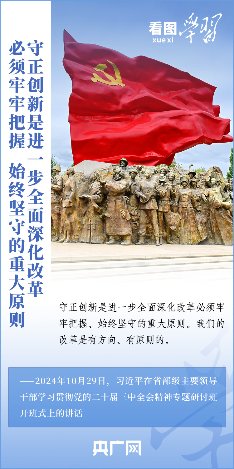 改革只有進行時,沒有完成時。10月29日,省部級主要領導幹部學習貫徹黨的二十屆三中全會精神專題研討班在中央黨校(國家行政學院)開班。習近平總書記發表重要講話,就進一步全面深化改革的一系列重大問題進行深刻闡釋,強調要牢牢把握、始終堅守“守正創新”這一重大原則,把握好“四對關係”,奮力打開改革發展新天地。一起來學習!