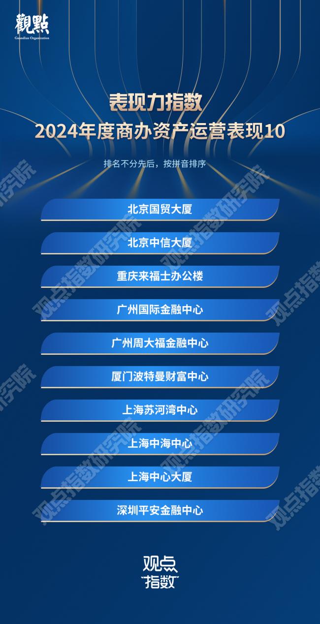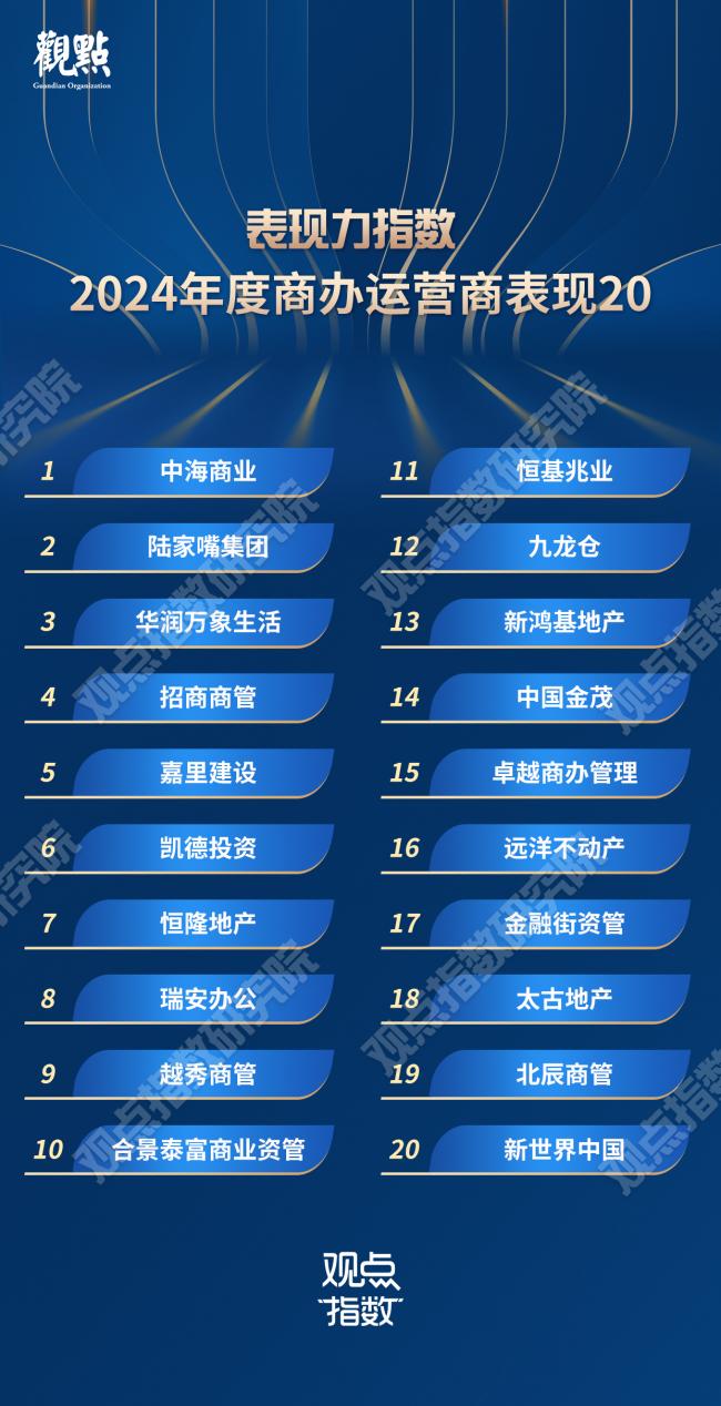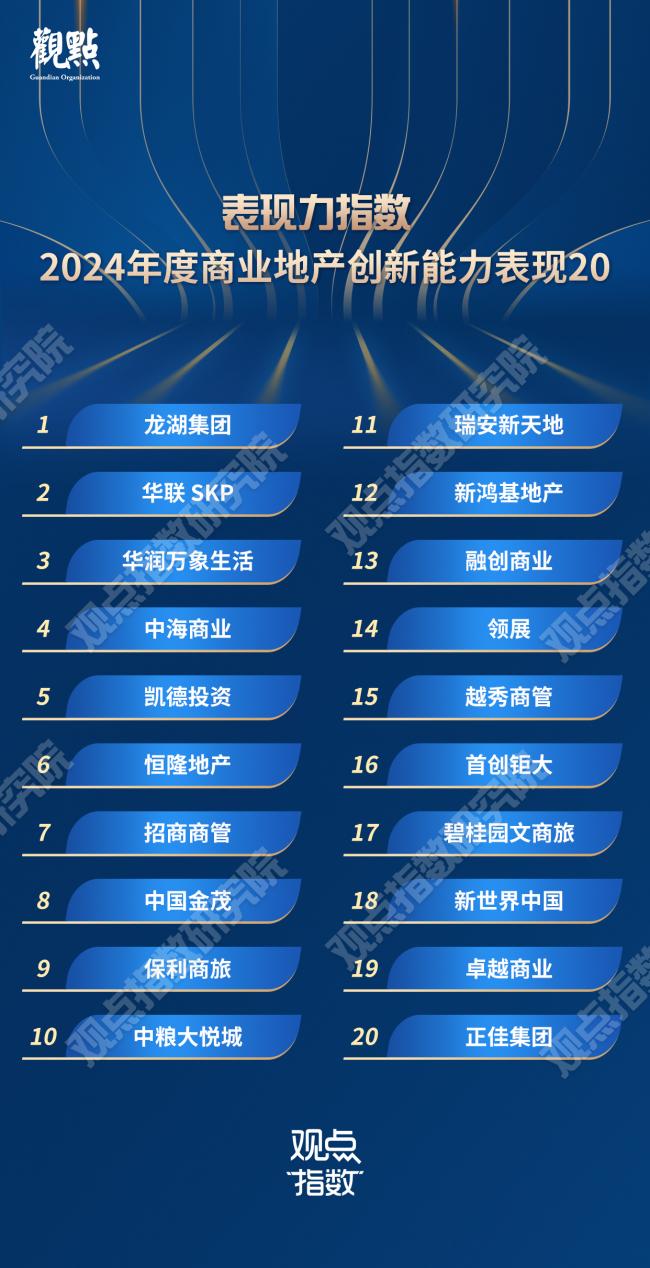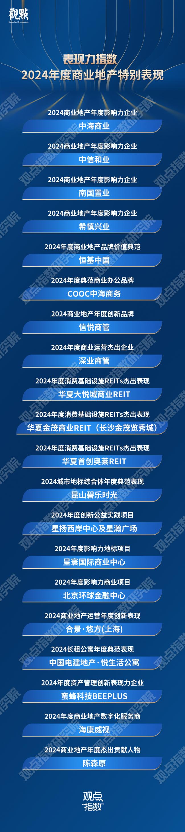 10月31日,由觀點機構主辦的2024觀點商業年會在上海召開。現場,觀點指數重磅發佈“表現力指數·2024年度商業地產表現”研究成果。