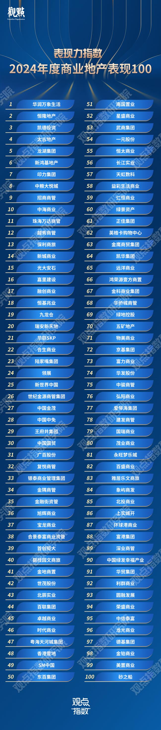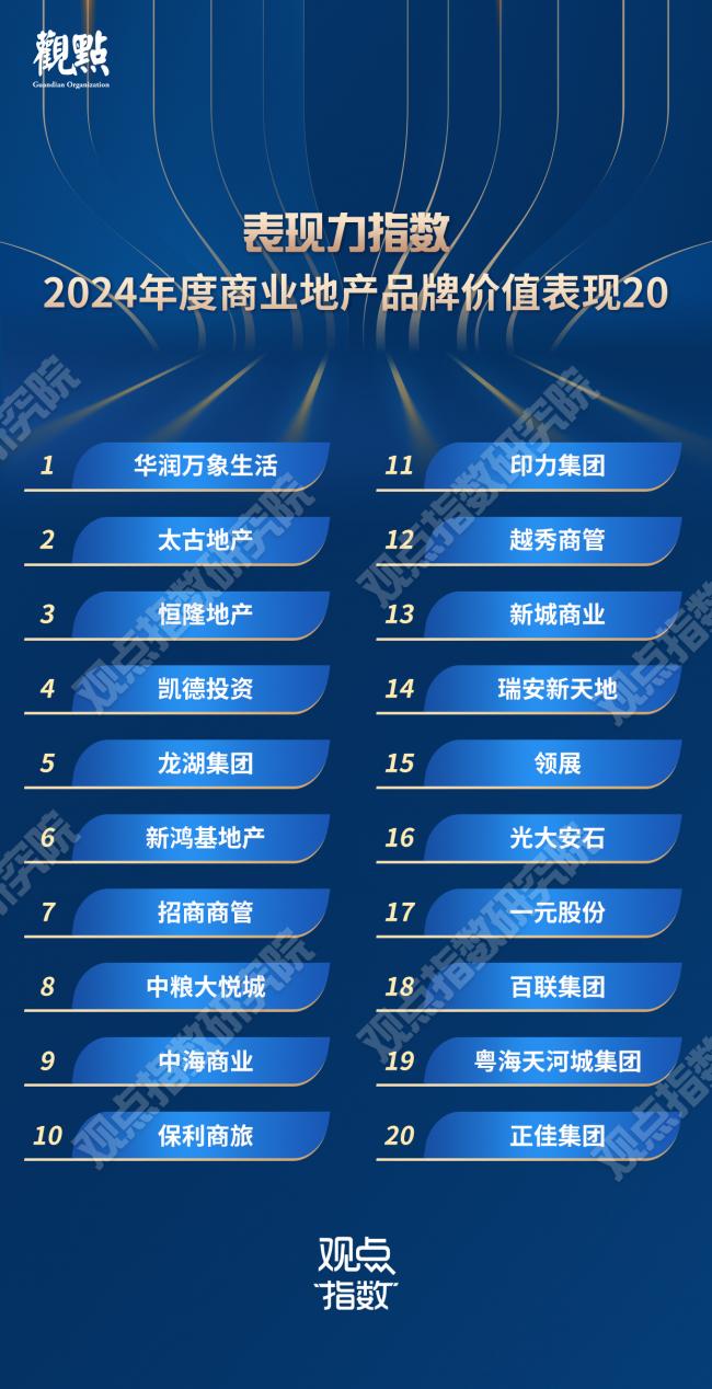 於行業調整中,觀點指數研究院繼續通過專業深度的數據研究與調研分析,重磅發佈《表現力指數 · 2024年度商業地產表現報告》,解構商業地產全產業鏈的發展變化,把脈行業風向。