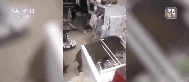 25日,浙江杭州街頭,一頭野豬闖入路邊一間店鋪;