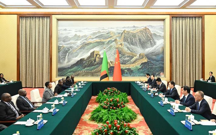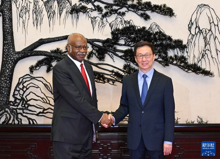 國家副主席韓正31日在京會見贊比亞國民議會議長穆蒂。