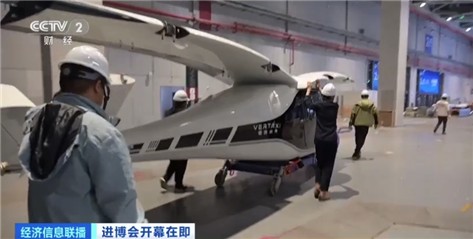 進博會最大展品來了!載人電動垂直起降飛行器“真機”運抵展台