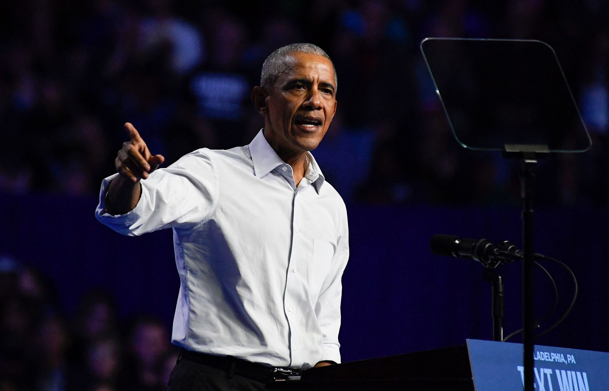 2024年10月28日,奧巴馬在費城的競選活動中發表講話 視覺中國