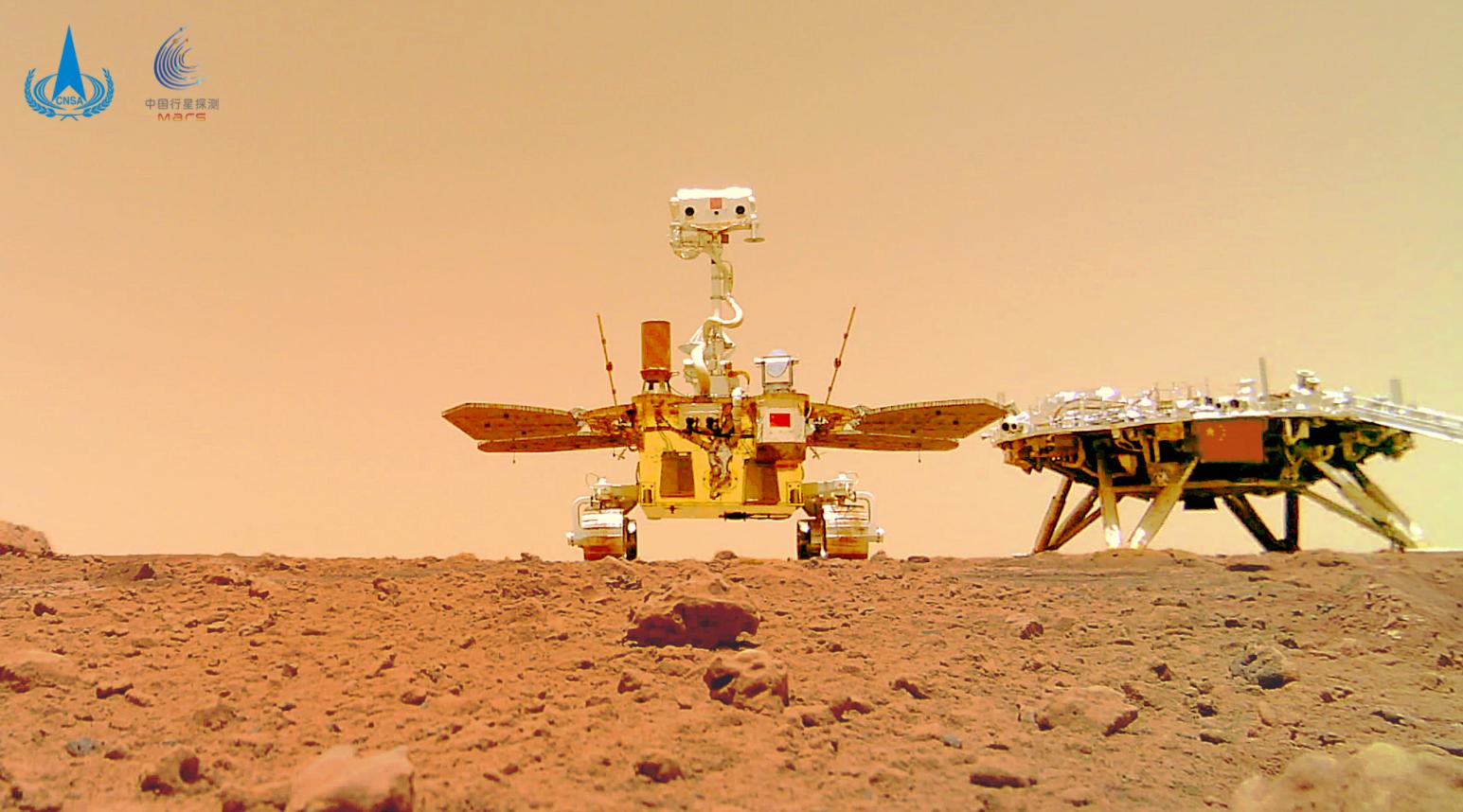已載入史冊的“祝融號”和着陸器合影 國家航天局