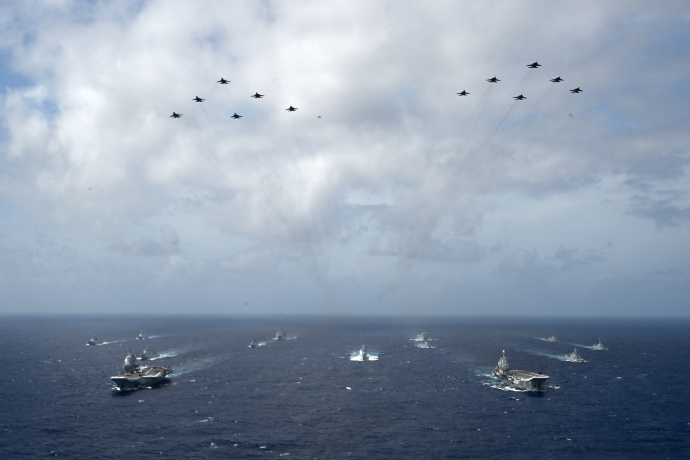 第一,遼寧艦和山東艦首次以雙航母編隊之姿亮相,本身就是最大的意義。在兩艘航母已經展示過艦載戰鬥機單日持續出動能力約40架次的基礎上,雙航母編隊不僅意味着戰機出動能力的加倍,也使得編隊可以根據任務需求、靈活調整兩艘航母各自的艦載機出動組合,更是以其無與倫比的強大氣勢,實現對周邊敵對勢力的震懾。