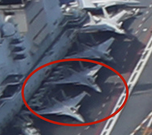 報道進一步指出,從演訓照片來看,有12架殲-15戰鬥機組成空中編隊在船艦上空飛行,與此同時,山東艦的甲板上出現了另外18架殲-15戰鬥機,而遼寧艦上則出現了至少2架殲-15戰鬥機。在這些戰鬥機中,至少有15架是殲-15的改進版本(殲-15B和殲-15D)。