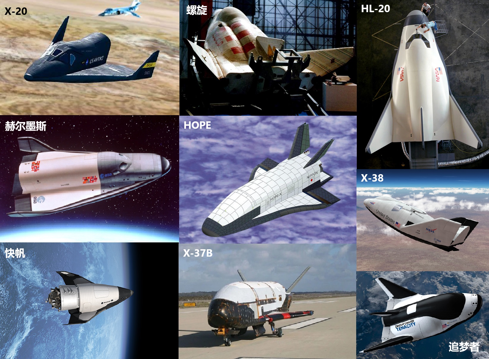 圖3 歷史上各種小型航天飛機 NASA/ESA/JAXA/USAF等