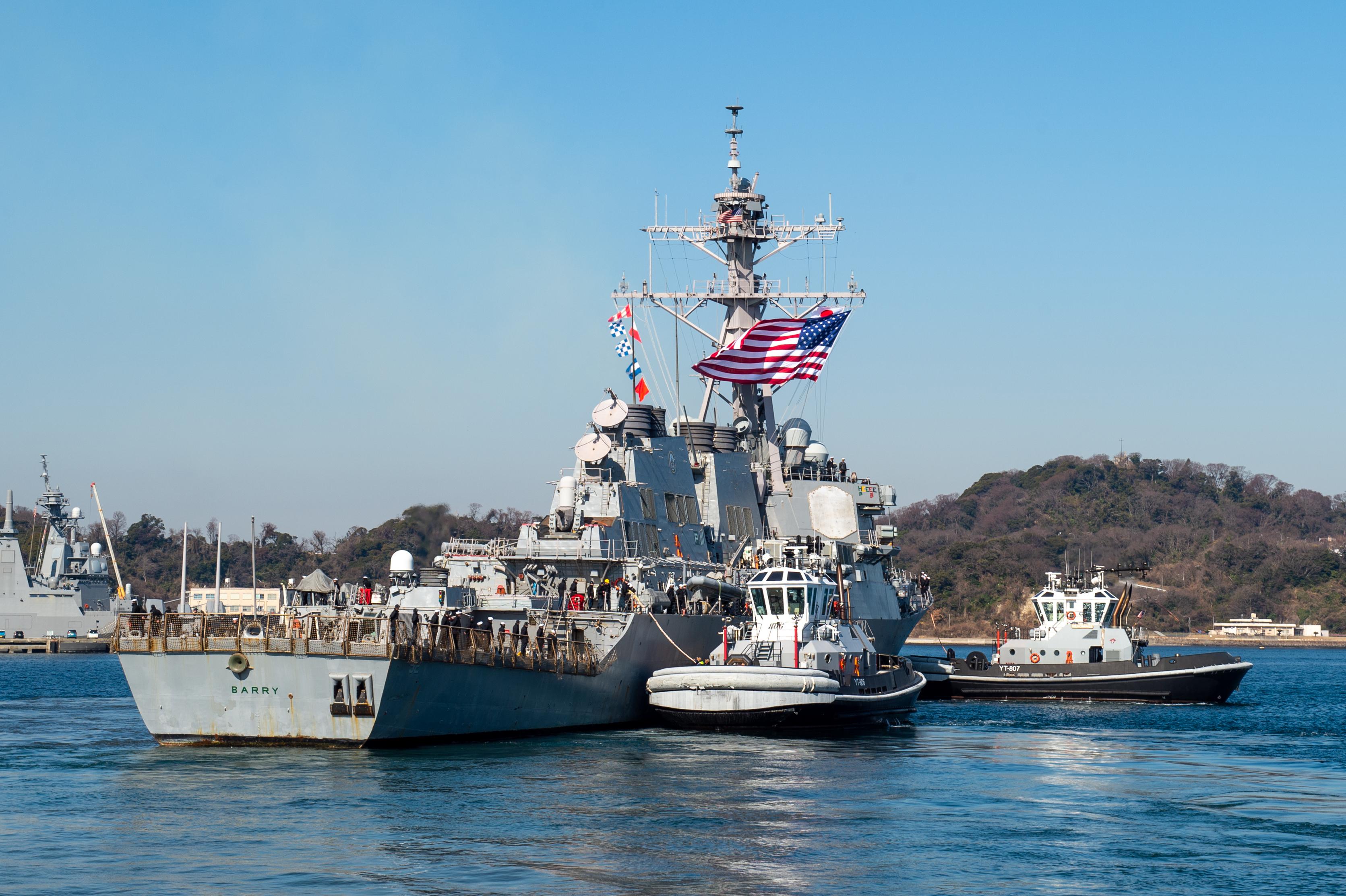 (資料圖)“阿利·伯克”級導彈驅逐艦DDG-52“巴里”2023年2月駛離日本橫須賀