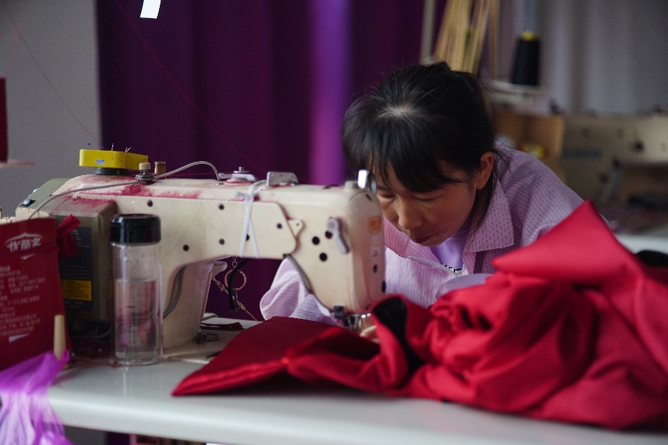 ▲丁集當地女性通過製作婚紗禮服月入過萬,同時兼顧了家庭。(郭家寶 攝)