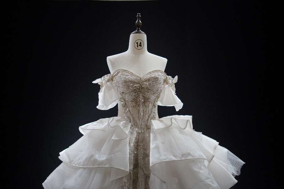 “婚紗禮服這個類目天然就很特別,用户買來只穿一次,客羣其實很小眾需要時間積累,所以前半年日銷售額大概有三四千元。”查蘭如説,但一到2020年網店生意開始爆發,年銷售額迅速達到了五百萬元,他也趁勢將工人規模擴大至數十人。
