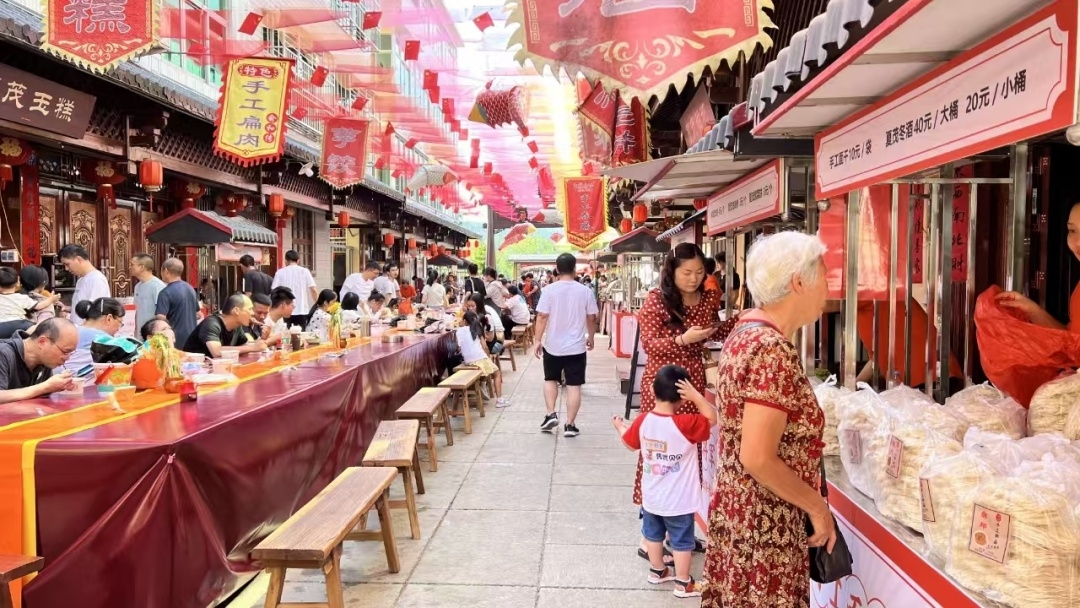 遊客在“尋根追味”小吃街品嚐地道小吃、採購伴手禮。沙縣區融媒體中心供圖