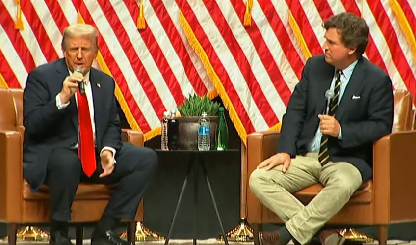 當地時間10月31日,特朗普在亞利桑那州接受卡爾森專訪 視頻截圖
