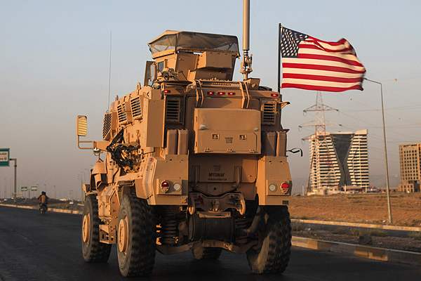 當地時間9月17日,伊拉克北部庫爾德自治區的美軍車隊 視覺中國