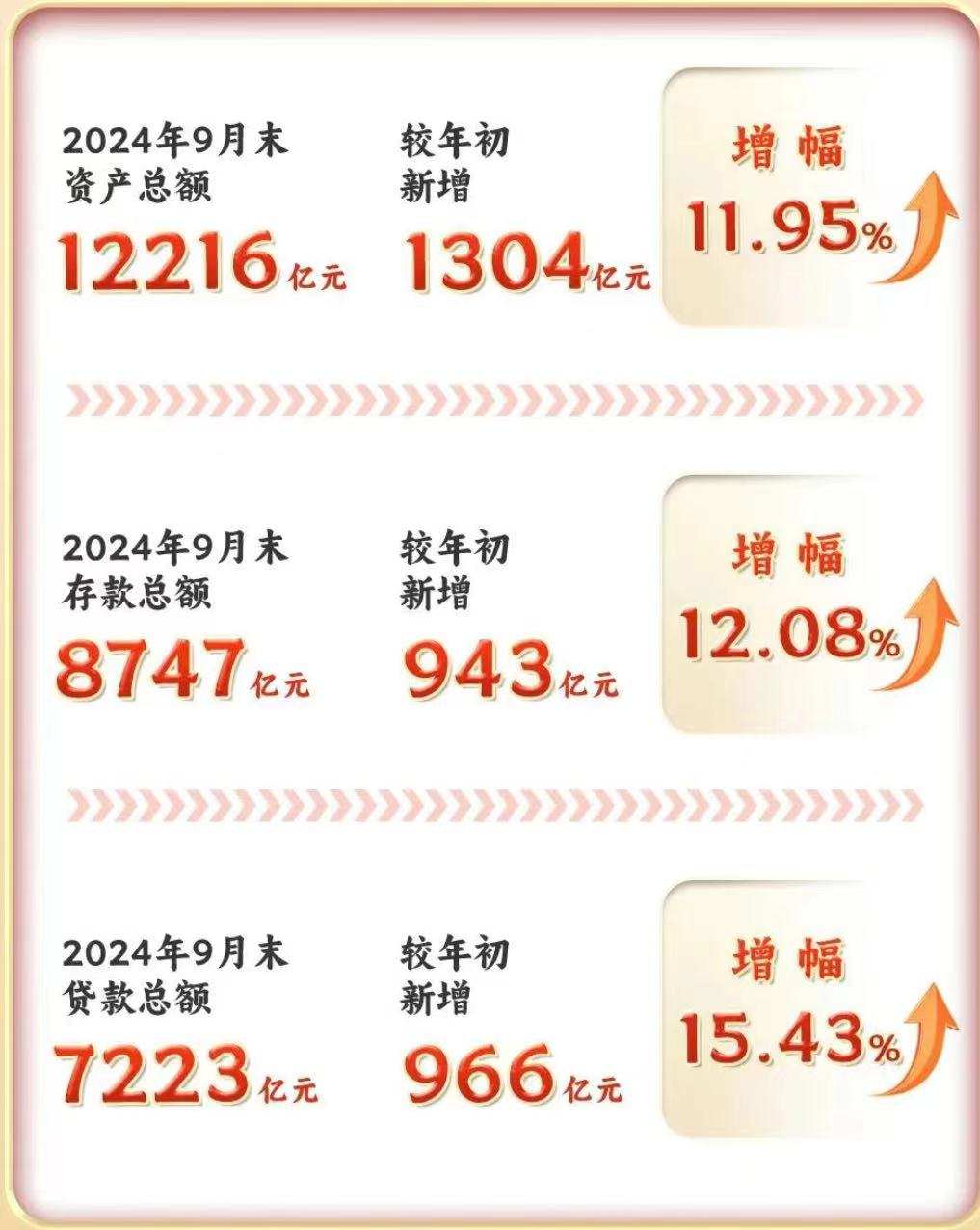 成都銀行表示,公司保持戰略發展定力,提升金融服務質效,經營規模持續增長,經營結構穩健。截至2024年9月末,成都銀行總資產1.22萬億元,較上年末增長1303.94億元,增幅11.95%;存款總額8746.72億元,較上年末增長12.08%;貸款總額7223.12億元,較上年末增長15.43%。存款佔總負債的比例為76.42%,經營結構保持穩健。
