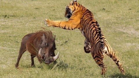 老虎捕獵野豬