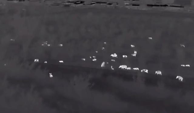無人機熱成像下的野豬羣