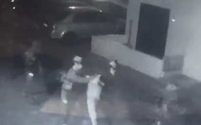 監控顯示,一名男子雙手被反綁在身後,被一隊士兵押着前行。《以色列時報》