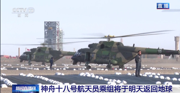 神十八乘組4日凌晨返回 五架直升機參與搜救