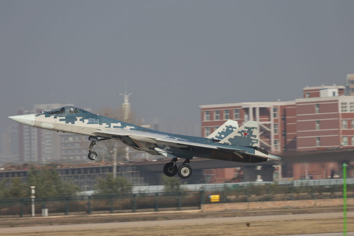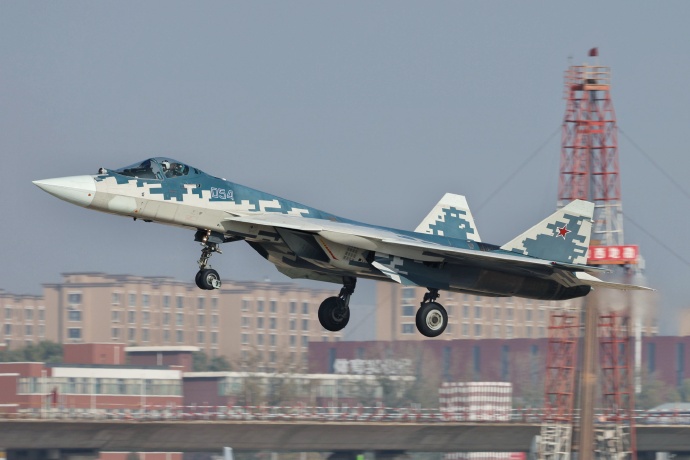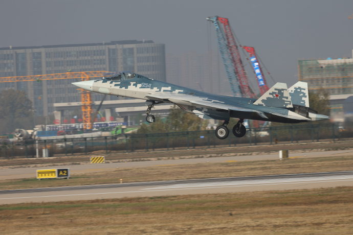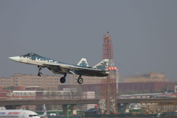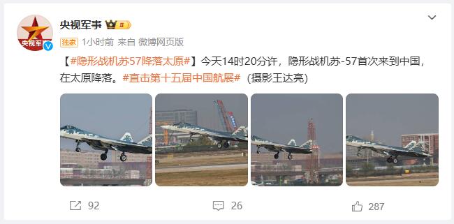 據@央視軍事 消息,11月3日14時20分許,隱形戰機蘇-57首次來到中國,在太原降落。
