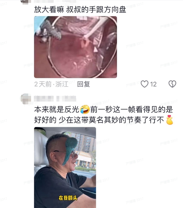 這期間,一些網民開始從兩位老人出鏡的蛛絲馬跡中尋找他們被“脅迫”的“證據”,有用户放大視頻中喬任梁父親的眼鏡鏡片,猜測副駕駛是否有人“威脅”他,擔心他們受傷。