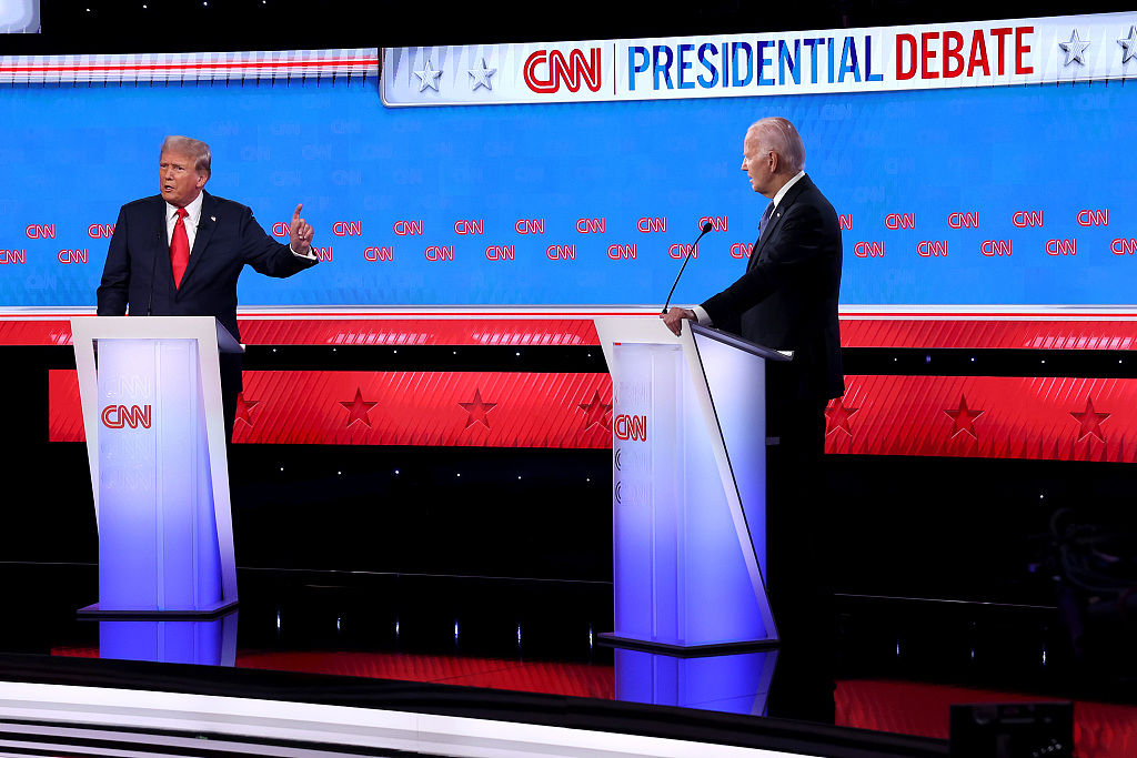 當地時間6月27日,美國現任總統拜登和前總統特朗普進行2024年美國總統大選首輪辯論視覺中國