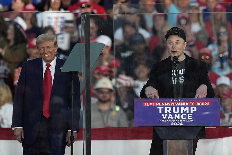 當地時間2024年10月5日,美國共和黨總統候選人特朗普重返賓夕法尼亞州的巴特勒市,馬斯克也參加特朗普了這次競選集會。視覺中國