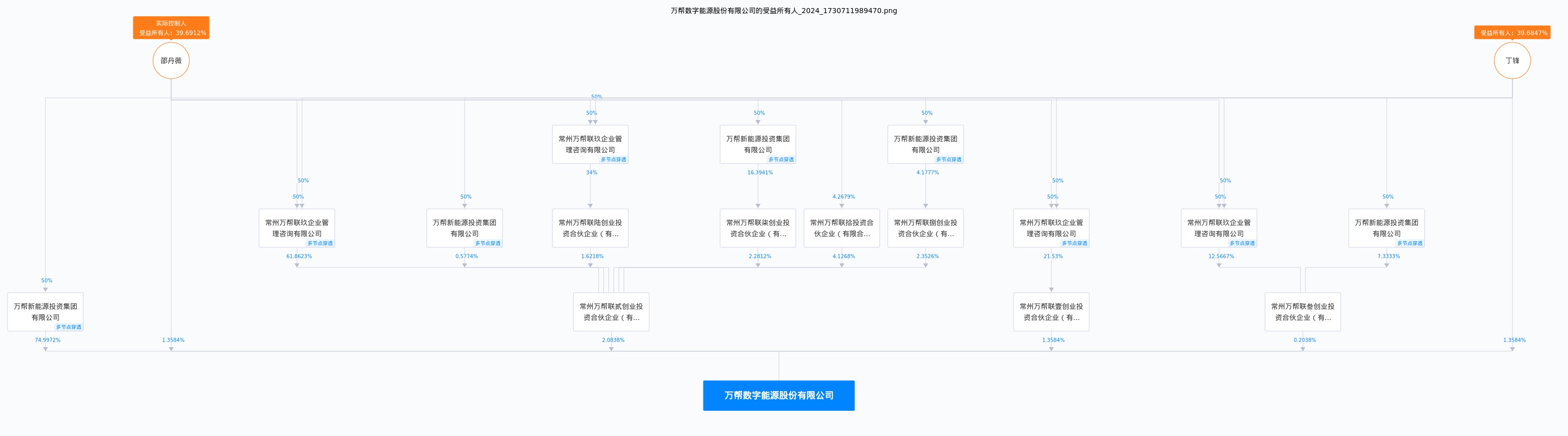 天眼查信息顯示,萬幫能源由萬幫汽車創始人丁鋒和萬幫能源掌舵人邵丹薇共同持股,持股比例大體相當。