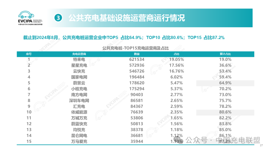 根據中國充電聯盟數據顯示,截至2024年8月,星星充電運營的公共充電樁數量達到57.3萬台,僅次於特來電,以17.56%的市場份額位列全國第二。