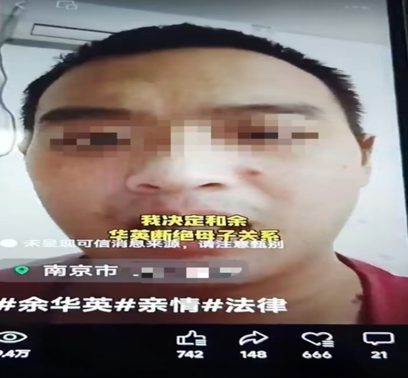 近期,南京公安機關網安部門工作中發現,網民“奶聲奶氣的咖啡”(又名“魔鬼蘇慧倫”)自稱是餘華英的兒子,在多個社交平台相繼發佈數條“我就是餘華英當年5000元賣出的兒子,希望大家能原諒我的母親,讓我與母親重逢”“餘華英沒文化,當年肯定是因為生活條件不好,才把我賣掉”“每個人都沒法選擇自己的父母,我決定和餘華英斷絕母子關係,此生不復相見”“餘華英要被判決了,希望大家能原諒我的母親”的視頻,引發大量網民關注、議論。