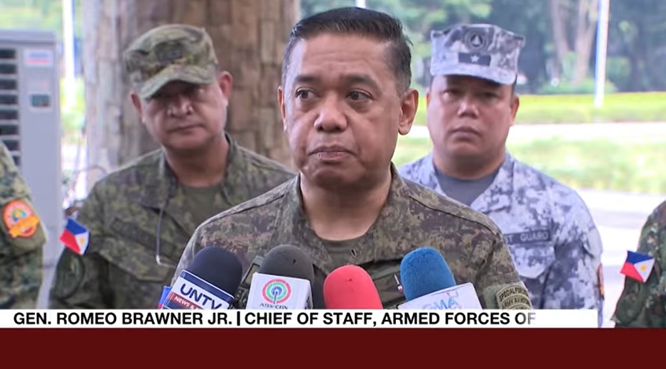 4日,菲武裝部隊總參謀長布勞納出席演習開幕式 菲媒ABS-CBN視頻截圖