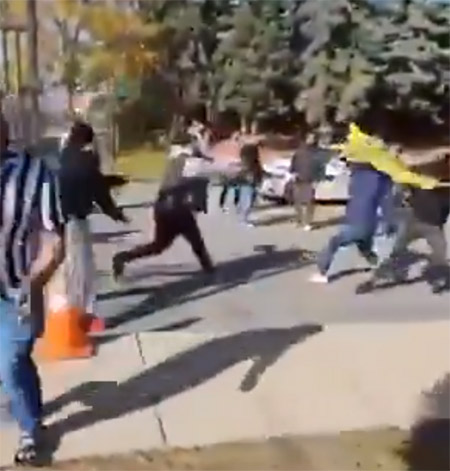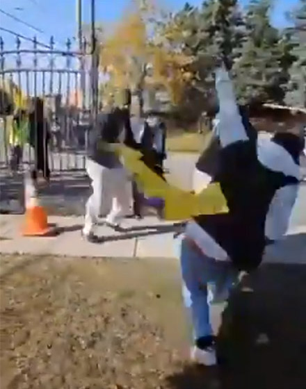 當地時間11月3日,加拿大一座印度教寺廟外發生暴力衝突 視頻截圖