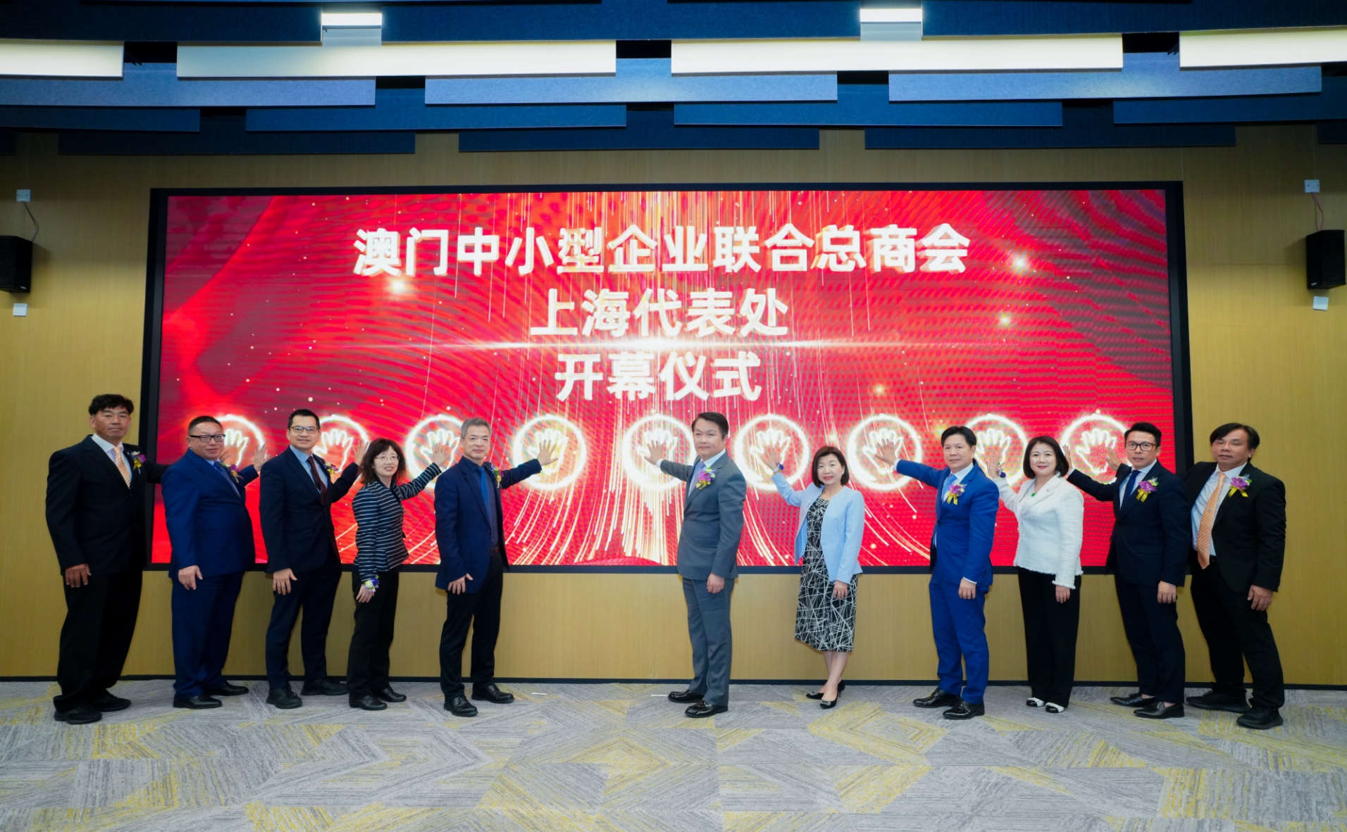 澳門中小型企業聯合總商會上海代表處今日於上海虹橋國際中央商務區中建企業天地舉行開幕儀式,標誌着滬澳兩地企業經貿合作邁入新階段。澳門特別行政區政府經濟財政司司長李偉農,上海虹橋國際中央商務區管理委員會黨組成員、副主任張斌,澳門特別行政區政府經濟財政司辦公室主任辜美玲,中央人民政府駐澳門特別行政區聯絡辦公室經濟部副部長兼貿易處負責人李華英,全國政協委員、澳門中華總商會副理事長葉兆佳,澳門特別行政區招商投資促進局主席餘雨生,該會會長兼上海代表處首席代表陳美儀,該會上海代表處執行委員胡景光、盧宏駿、楊永成、廖力嘉主禮開幕儀式。